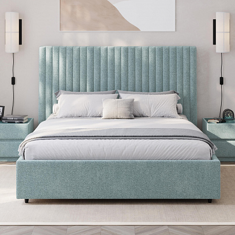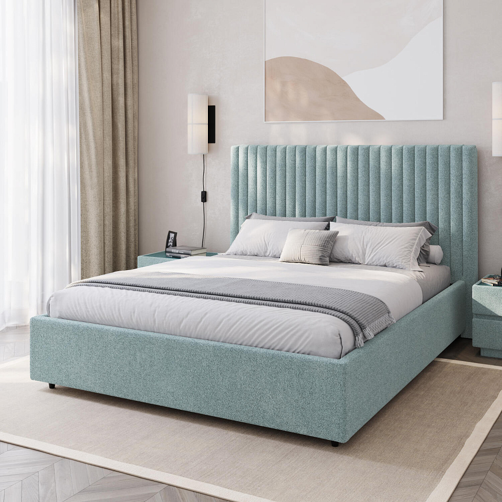 Мягкая кровать «Максима» в обивке из ткани букле украсит современный интерьер спальни и подарит комфортный сон. Лаконичная строчка в виде вертикальных параллельных линий на изголовье подходит для различных стилей интерьера, от современного минимализма до классики. Модель поможет сэкономить место в комнате благодаря просторному бельевому коробу под решёткой, и станет не только практичным, но и стильным акцентом в спальне.