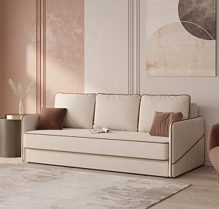 Обивка из буклированной ткани выглядит элегантно и ненавязчиво. Ткань приятная на ощупь, износостойкая и не подвержена выцветанию.