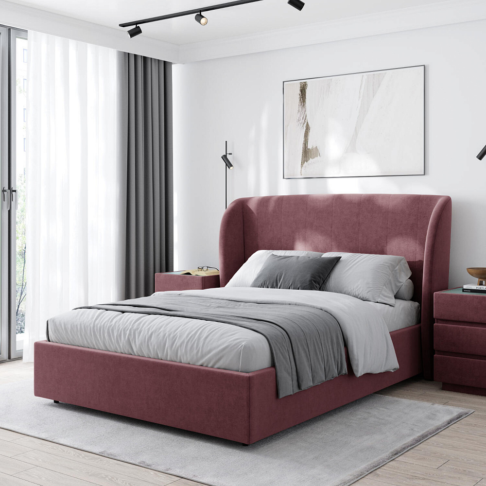 Кровать «Алессия» в обивке из велюра — это великолепное сочетание стиля и комфорта, которое создаст особую атмосферу в спальне. Оригинальное изогнутое изголовье визуально смягчает линии, создавая гармоничное и уютное пространство, а также дарит дополнительный комфорт для отдыха и чтения.