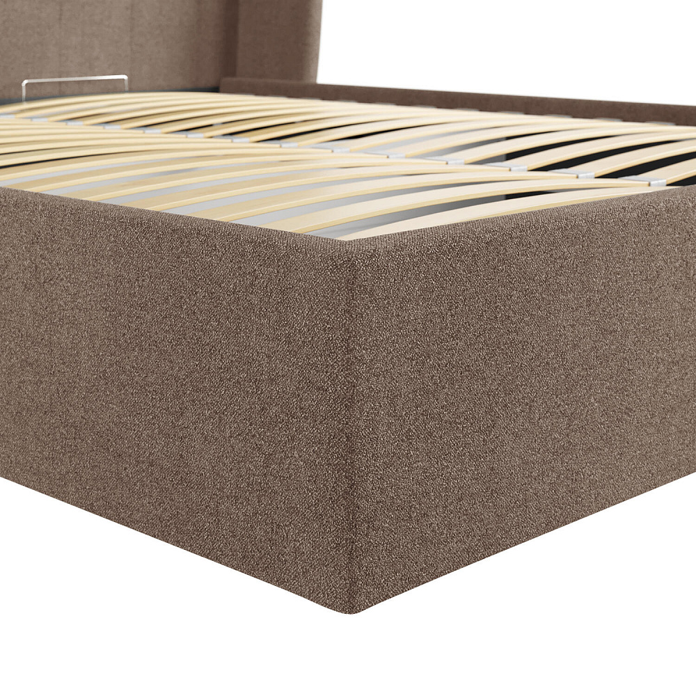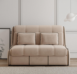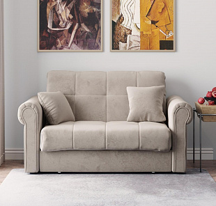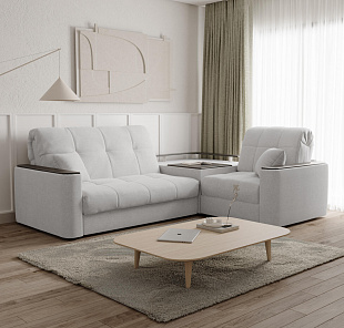 Обивка из буклированной ткани выглядит элегантно и ненавязчиво. Ткань приятная на ощупь, износостойкая и не подвержена выцветанию.