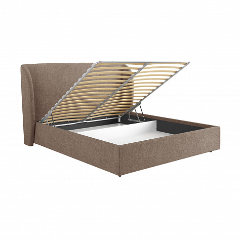 Подъемный механизм поднимает и опускает основание кровати вместе с матрасом, открывая доступ к пространству для хранения вещей.
