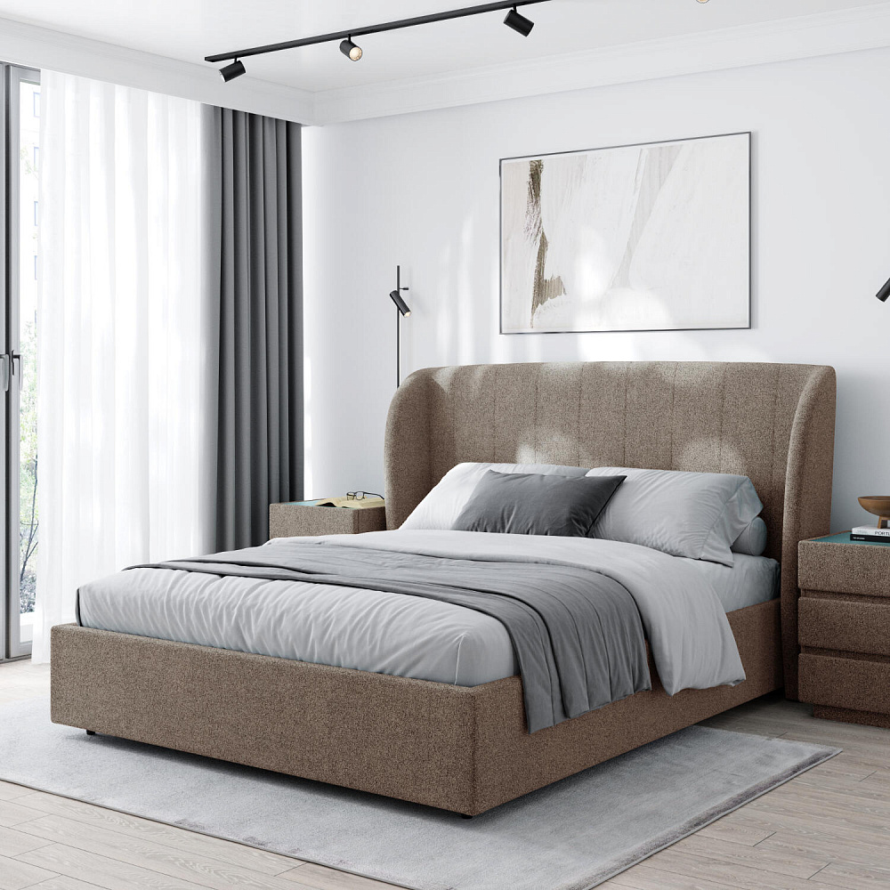 Кровать «Алессия» в обивке из букле — это великолепное сочетание стиля и комфорта, которое создаст особую атмосферу в спальне. Оригинальное изогнутое изголовье визуально смягчает линии, создавая гармоничное и уютное пространство, а также дарит дополнительный комфорт для отдыха и чтения.
