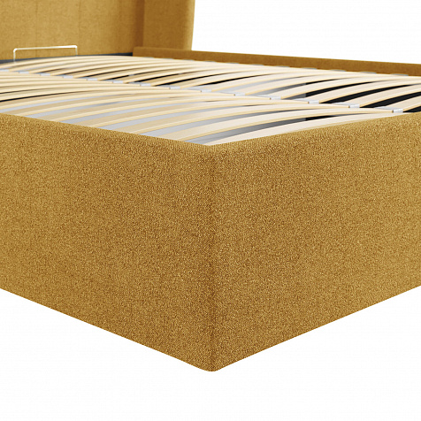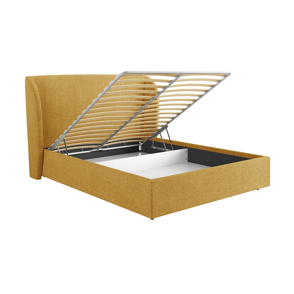 Подъемный механизм поднимает и опускает основание кровати вместе с матрасом, открывая доступ к пространству для хранения вещей.