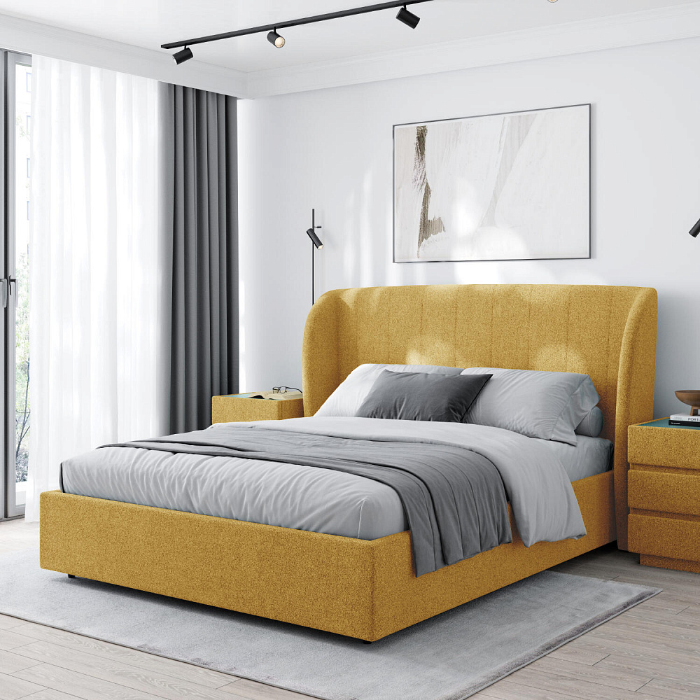 Кровать «Алессия» в обивке из букле — это великолепное сочетание стиля и комфорта, которое создаст особую атмосферу в спальне. Оригинальное изогнутое изголовье визуально смягчает линии, создавая гармоничное и уютное пространство, а также дарит дополнительный комфорт для отдыха и чтения.