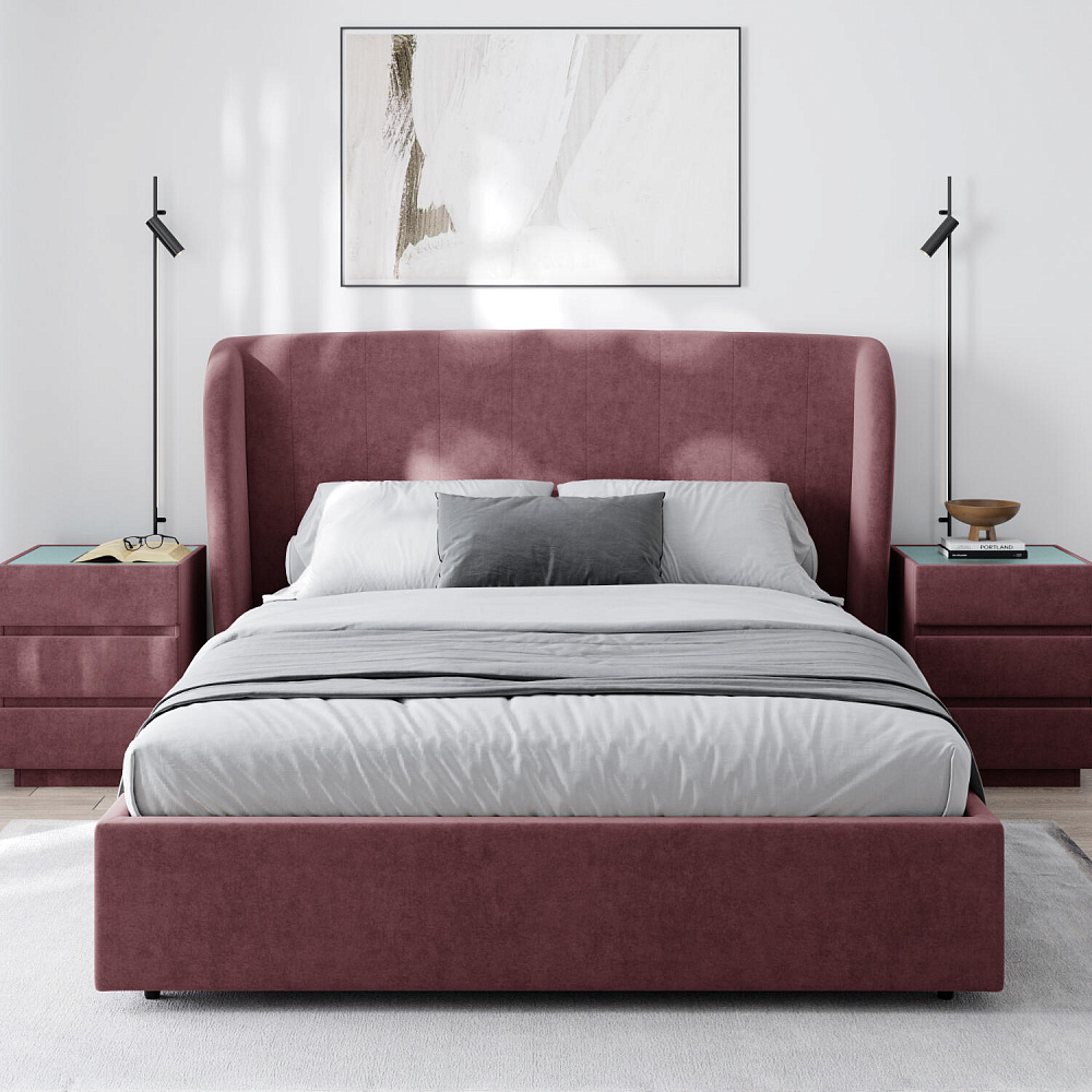 Кровать «Алессия» в обивке из велюра — это великолепное сочетание стиля и комфорта, которое создаст особую атмосферу в спальне. Оригинальное изогнутое изголовье визуально смягчает линии, создавая гармоничное и уютное пространство, а также дарит дополнительный комфорт для отдыха и чтения.