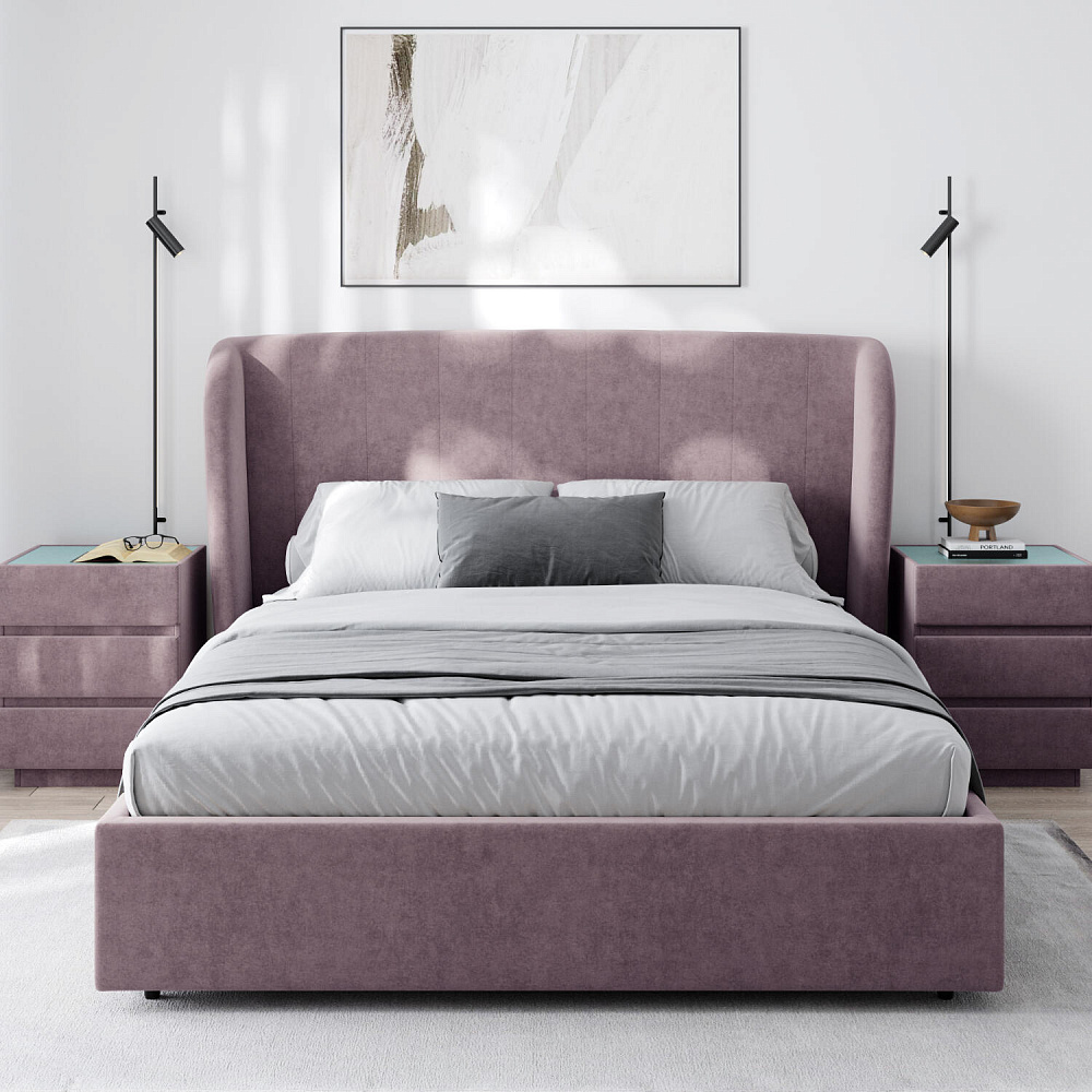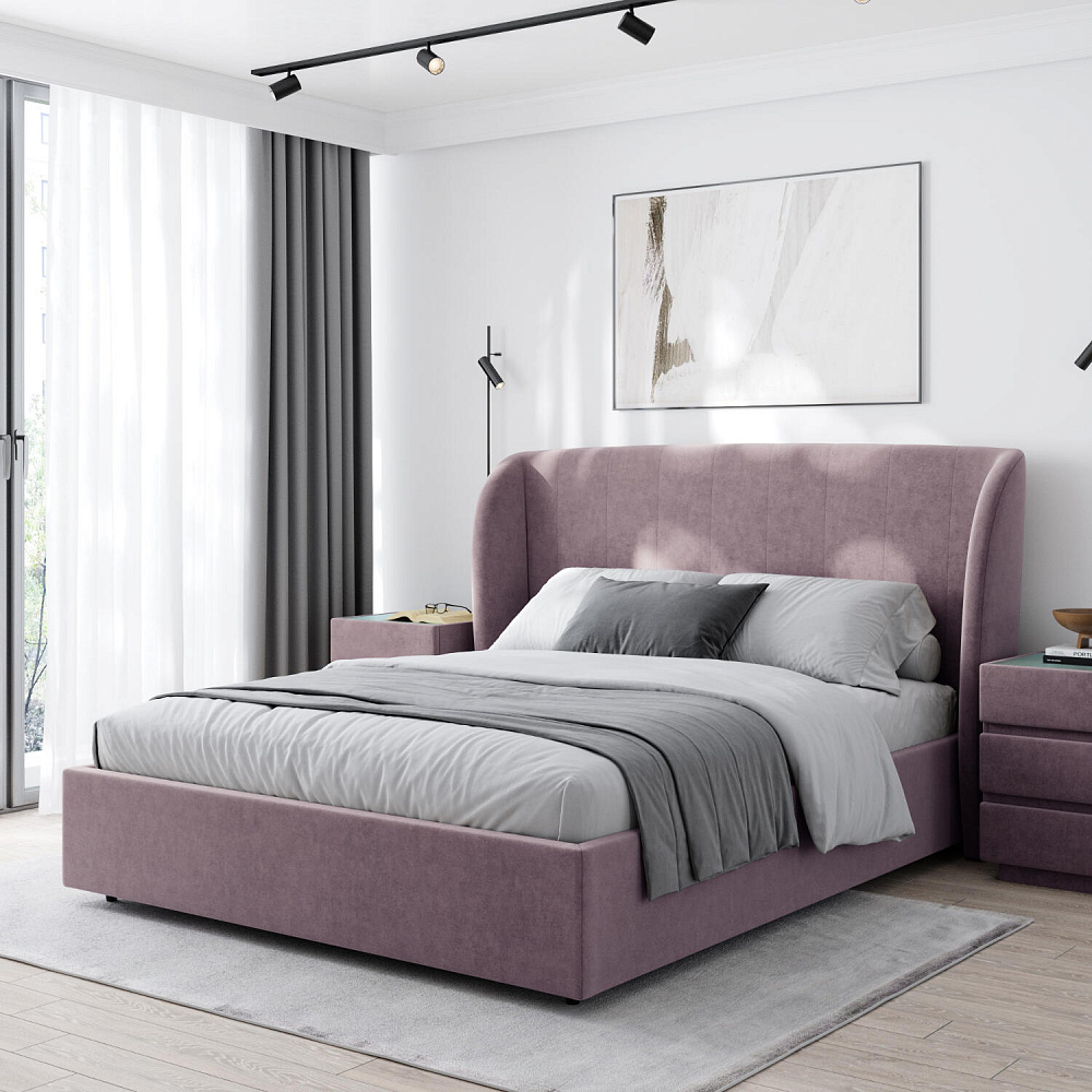 Кровать «Алессия» в обивке из велюра — это великолепное сочетание стиля и комфорта, которое создаст особую атмосферу в спальне. Оригинальное изогнутое изголовье визуально смягчает линии, создавая гармоничное и уютное пространство, а также дарит дополнительный комфорт для отдыха и чтения.