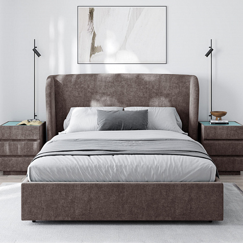 Кровать «Алессия» в обивке из велюра — это великолепное сочетание стиля и комфорта, которое создаст особую атмосферу в спальне. Оригинальное изогнутое изголовье визуально смягчает линии, создавая гармоничное и уютное пространство, а также дарит дополнительный комфорт для отдыха и чтения.