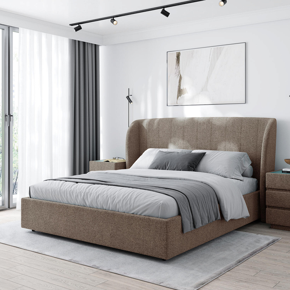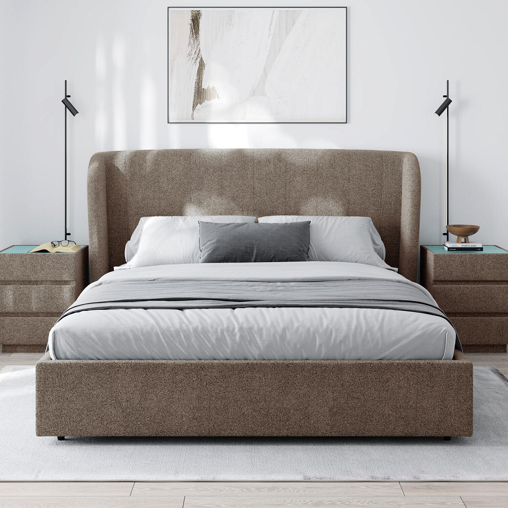 Кровать «Алессия» в обивке из букле — это великолепное сочетание стиля и комфорта, которое создаст особую атмосферу в спальне. Оригинальное изогнутое изголовье визуально смягчает линии, создавая гармоничное и уютное пространство, а также дарит дополнительный комфорт для отдыха и чтения.