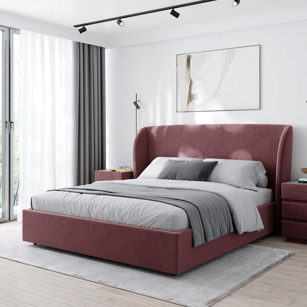 Кровать «Алессия» в обивке из велюра — это великолепное сочетание стиля и комфорта, которое создаст особую атмосферу в спальне. Оригинальное изогнутое изголовье визуально смягчает линии, создавая гармоничное и уютное пространство, а также дарит дополнительный комфорт для отдыха и чтения.