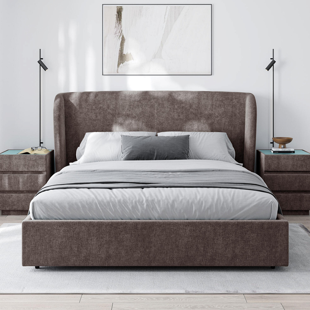 Кровать «Алессия» в обивке из велюра — это великолепное сочетание стиля и комфорта, которое создаст особую атмосферу в спальне. Оригинальное изогнутое изголовье визуально смягчает линии, создавая гармоничное и уютное пространство, а также дарит дополнительный комфорт для отдыха и чтения.