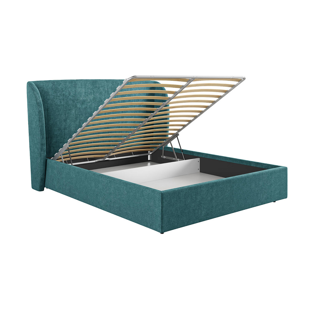 Подъемный механизм поднимает и опускает основание кровати вместе с матрасом, открывая доступ к пространству для хранения вещей.