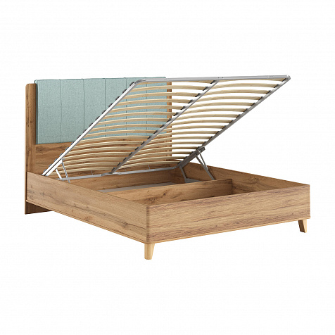 - Удобный доступ к коробу. Благодаря подъемному механизму можно поднять спальное место и получить доступ к бельевому ящику.