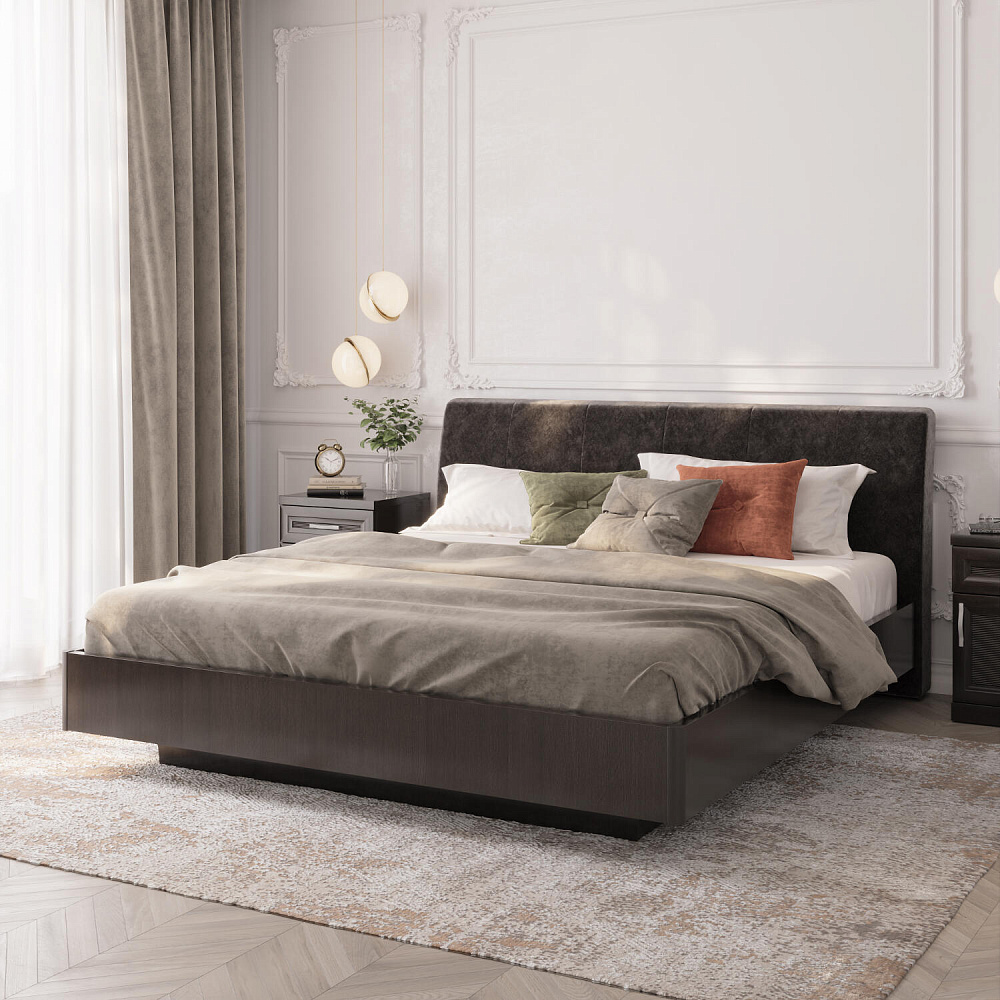 Кровать «Магна» с мягким изголовьем и подъемным механизмом станет главным местом для комфортного сна и отдыха в спальне. Благодаря мягкому изголовью можно удобно облокотиться на спинку кровати во время чтения книги или просмотра кино. Под основанием находится просторный бельевой короб с удобным доступом.
