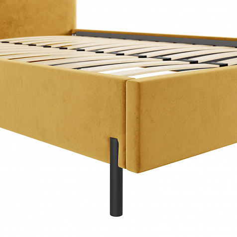 Высокие металлические опоры — стильный акцент в дизайне кровати, который придает ей визуальную легкость и невесомость.