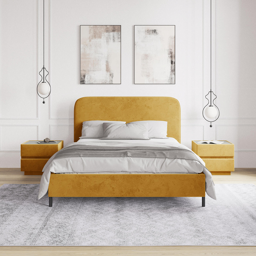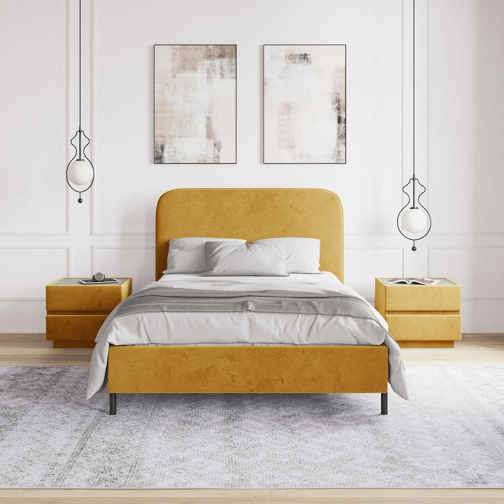 Кровать «Эвелин» в минималистичном дизайне подойдет для любого стилистического решения спальни. Мягкое изголовье украшено аккуратным кантом по периметру, что придает ей лаконичный и современный вид. Такое изголовье подойдет для чтения книги или просмотра телевизора, облокотившись на него. Надежное основание и правильно подобранный матрас обеспечат необходимый уровень для здорового сна и отдыха.