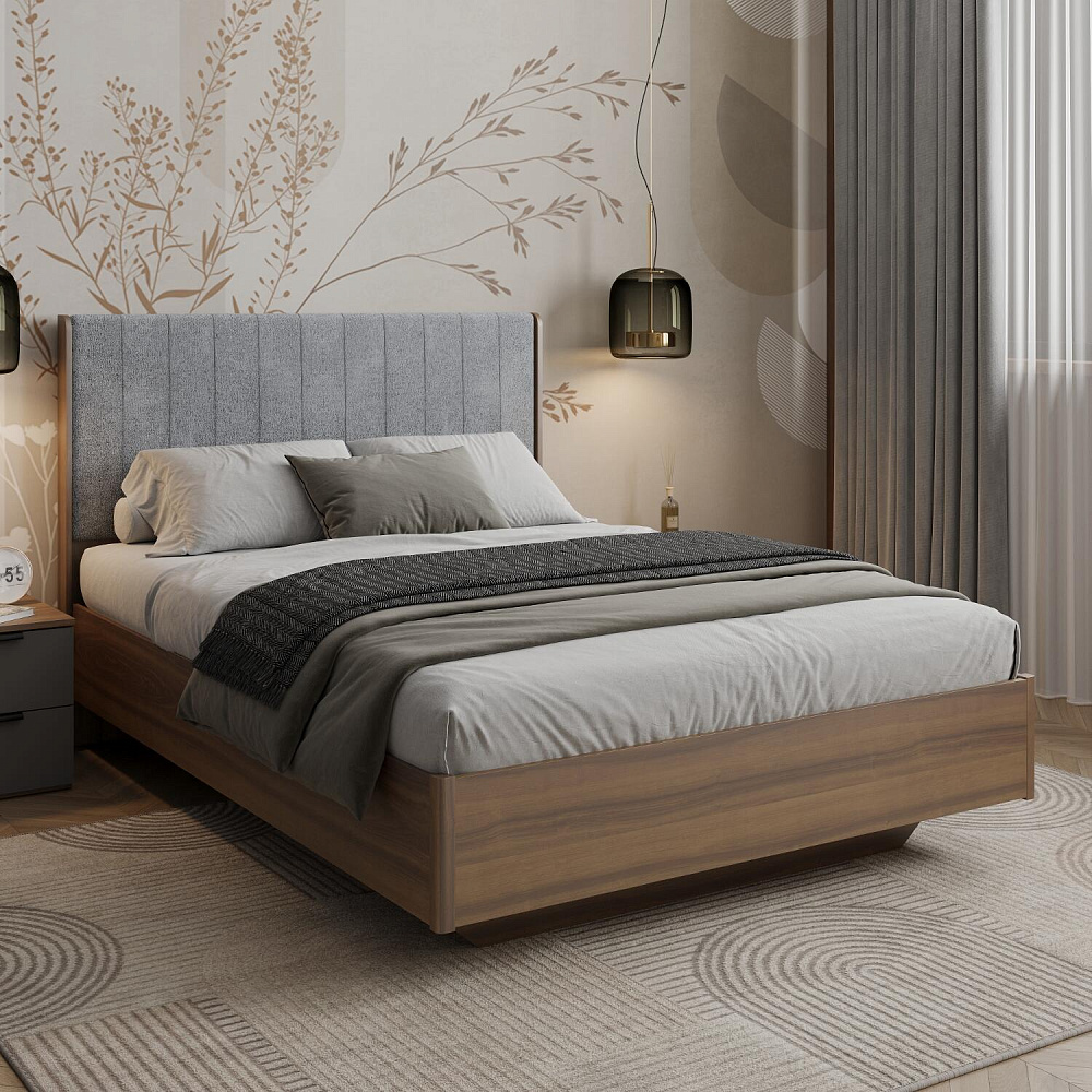 Кровать «Адажио» с мягким изголовьем украсит спальню в современном стиле. Изголовье из воздушной ткани букле подарит не только непревзойденный комфорт для отдыха и сна, но и добавит пространству комнаты стильный акцент. Под основанием находится просторный бельевой короб с удобным доступом.
