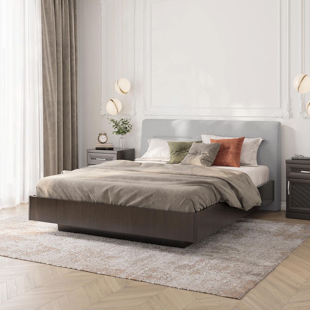 Кровать «Магна» с мягким изголовьем и подъемным механизмом станет главным местом для комфортного сна и отдыха в спальне. Благодаря мягкому изголовью можно удобно облокотиться на спинку кровати во время чтения книги или просмотра кино. Под основанием находится просторный бельевой короб с удобным доступом.