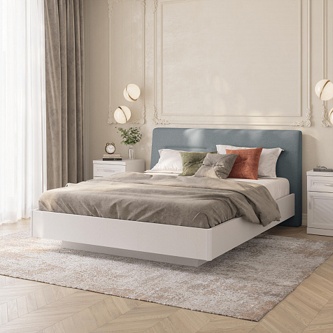 Мягкое изголовье с обивкой из велюра. Визуальная схожесть с текстурой букле смотрится элегантно. Ткань приятная на ощупь, устойчива к истиранию и механическим повреждениям.