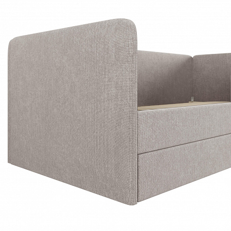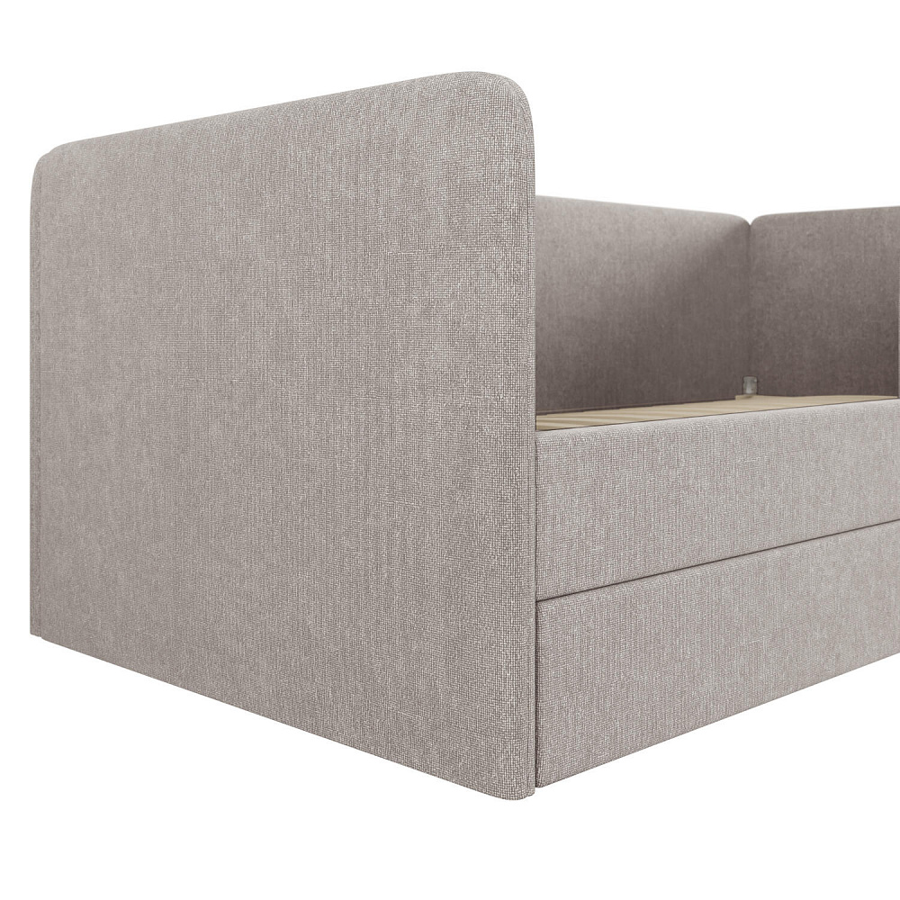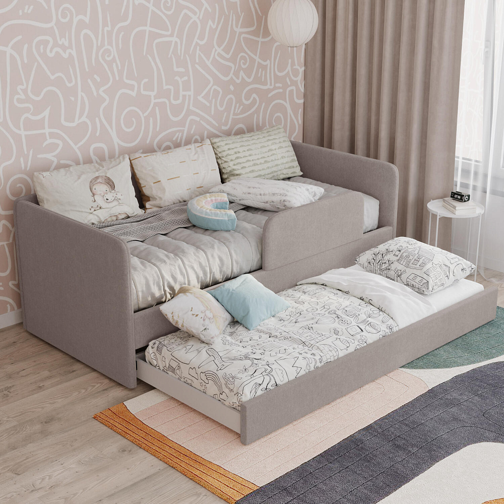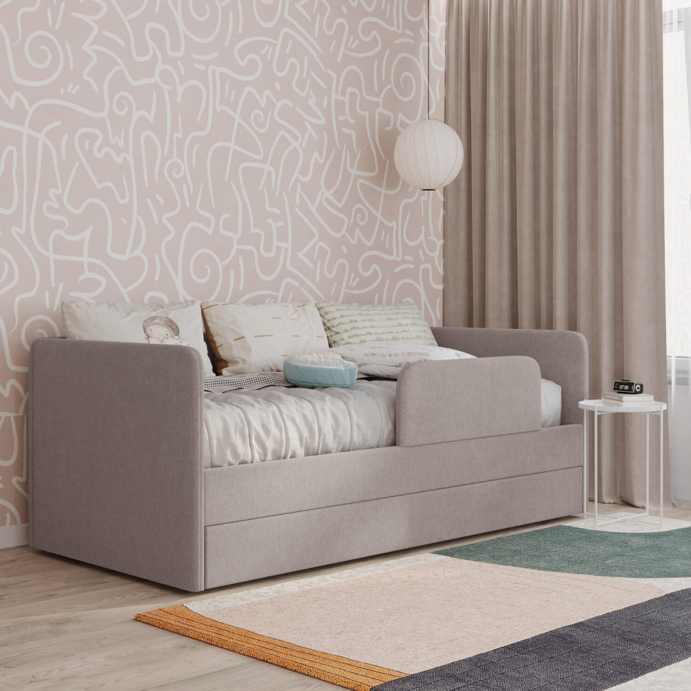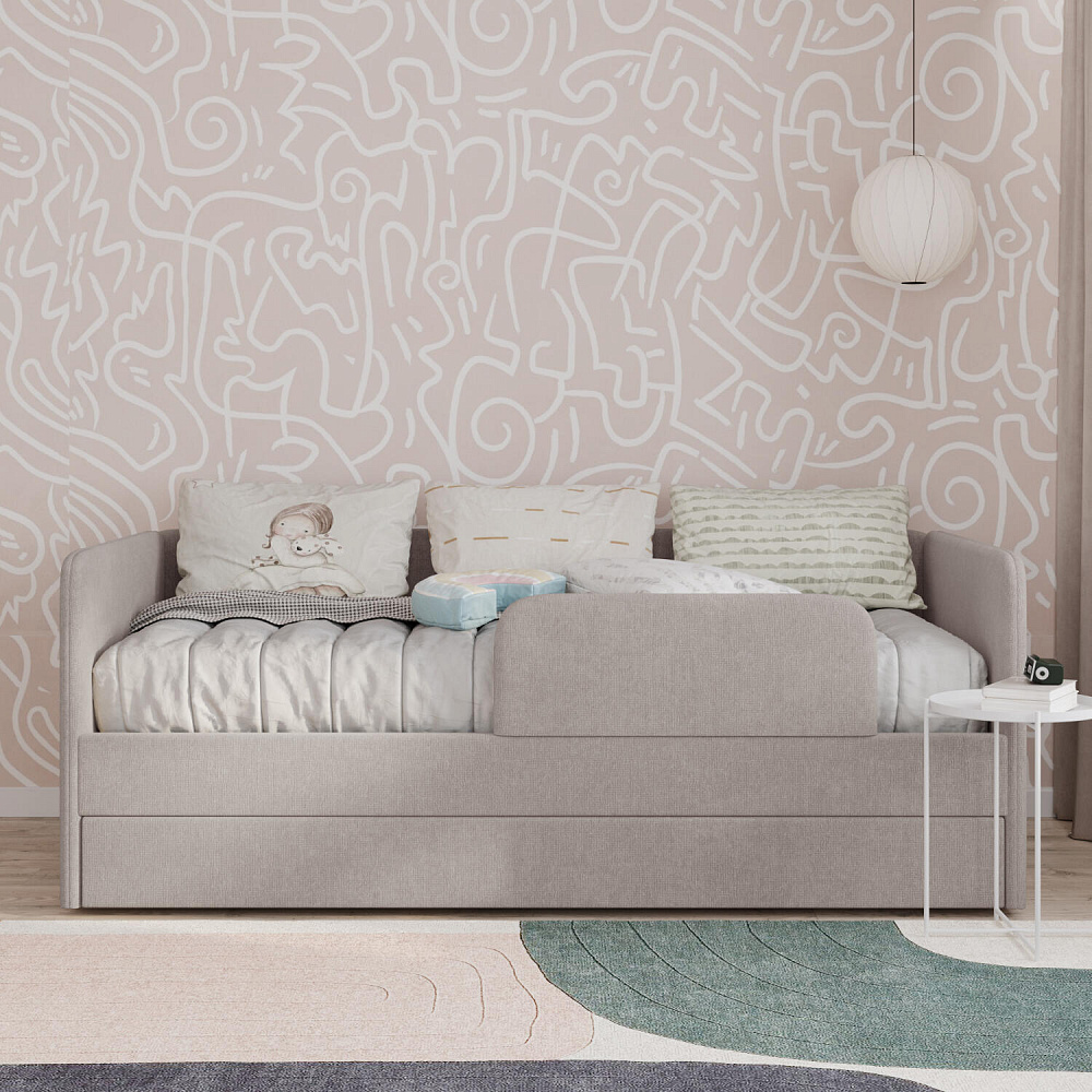 Мягкая кровать «Венди» непременно станет центром детской комнаты. Главная особенность кровати — это выдвижной короб, который можно дополнить матрасом и использовать как второе спальное место. Конструкция 2-в-1 сэкономит пространство в комнате, а удобные размеры спальных мест обеспечат максимально спокойный и полезный отдых ваших детей.