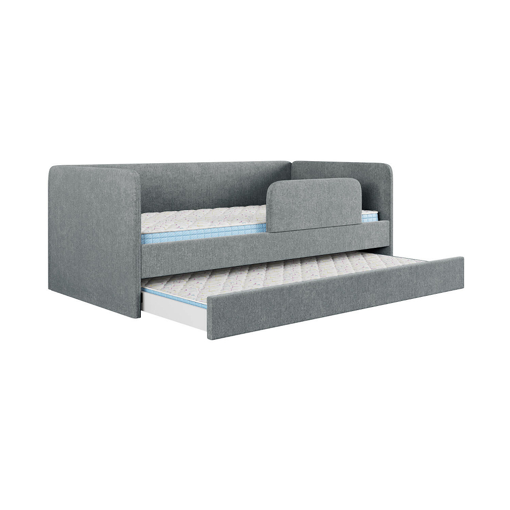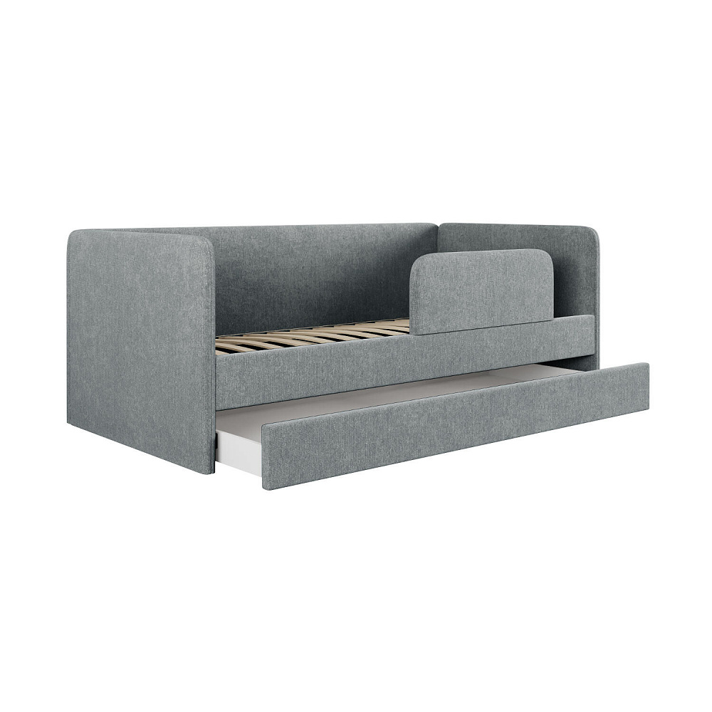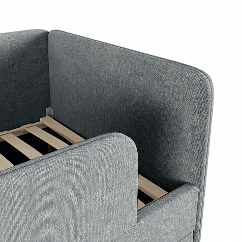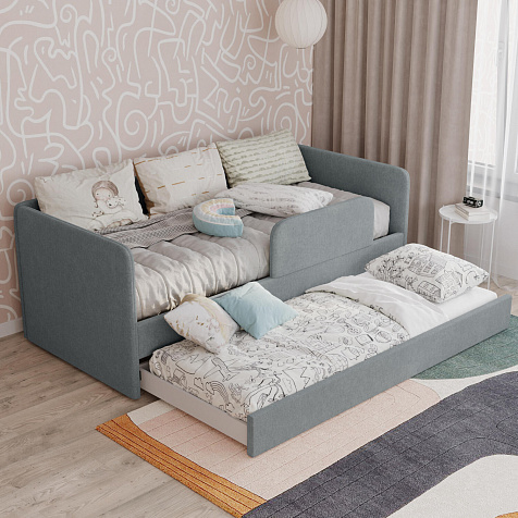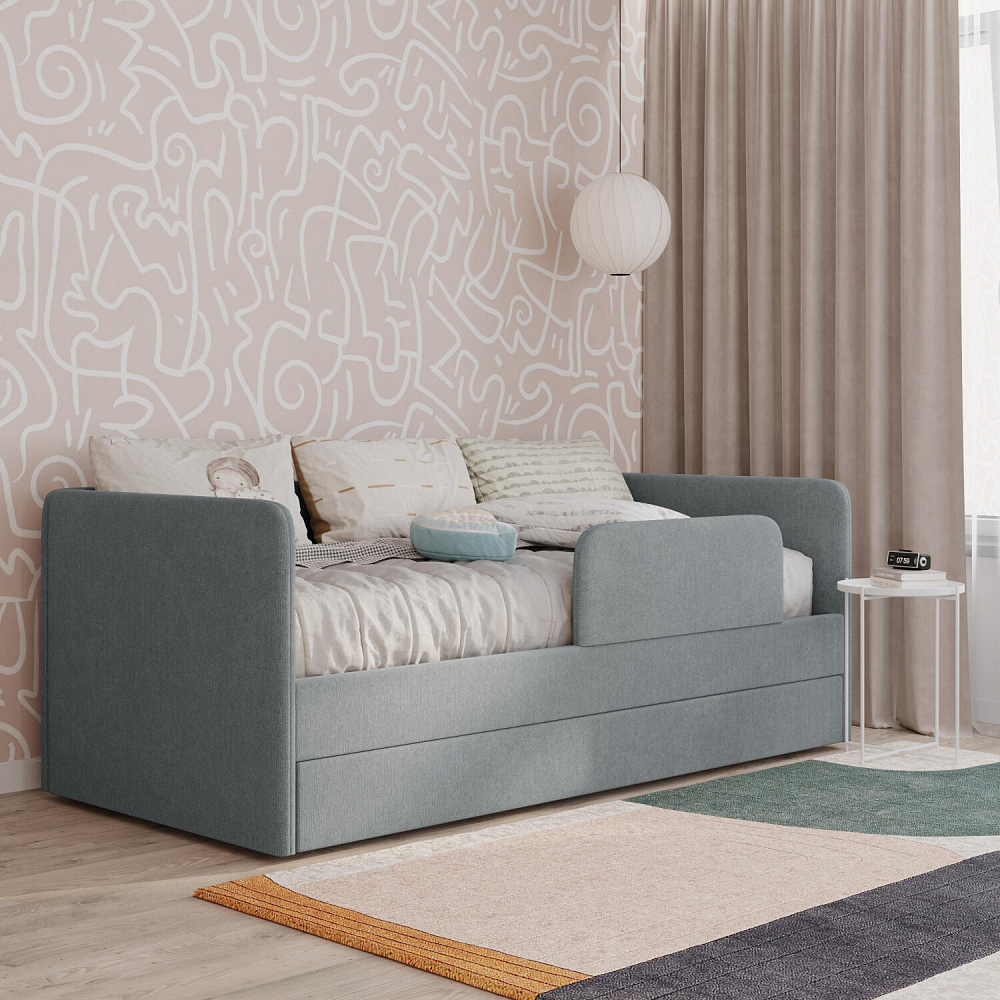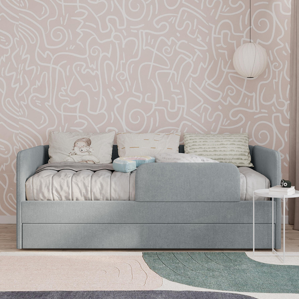 Мягкая кровать «Венди» непременно станет центром детской комнаты. Главная особенность кровати — это выдвижной короб, который можно дополнить матрасом и использовать как второе спальное место. Конструкция 2-в-1 сэкономит пространство в комнате, а удобные размеры спальных мест обеспечат максимально спокойный и полезный отдых ваших детей.
