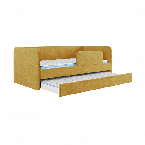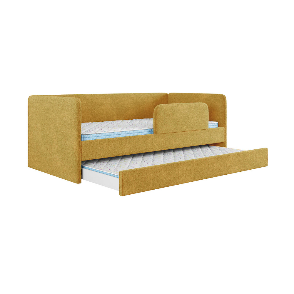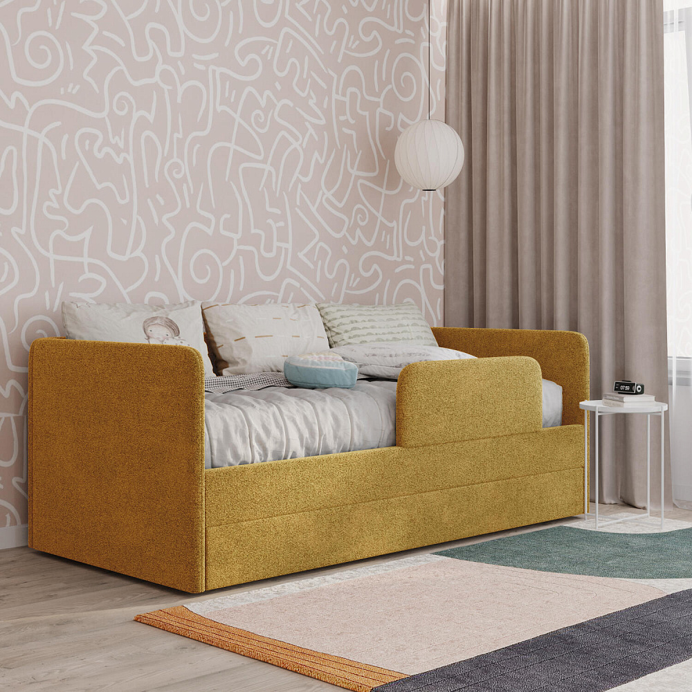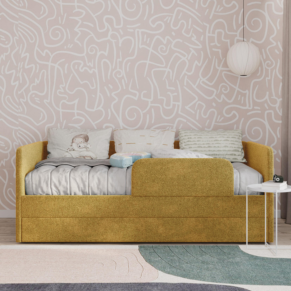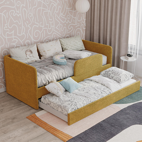 Мягкая кровать «Венди» непременно станет центром детской комнаты. Главная особенность кровати — это выдвижной короб, который можно дополнить матрасом и использовать как второе спальное место. Конструкция 2-в-1 сэкономит пространство в комнате, а удобные размеры спальных мест обеспечат максимально спокойный и полезный отдых ваших детей.