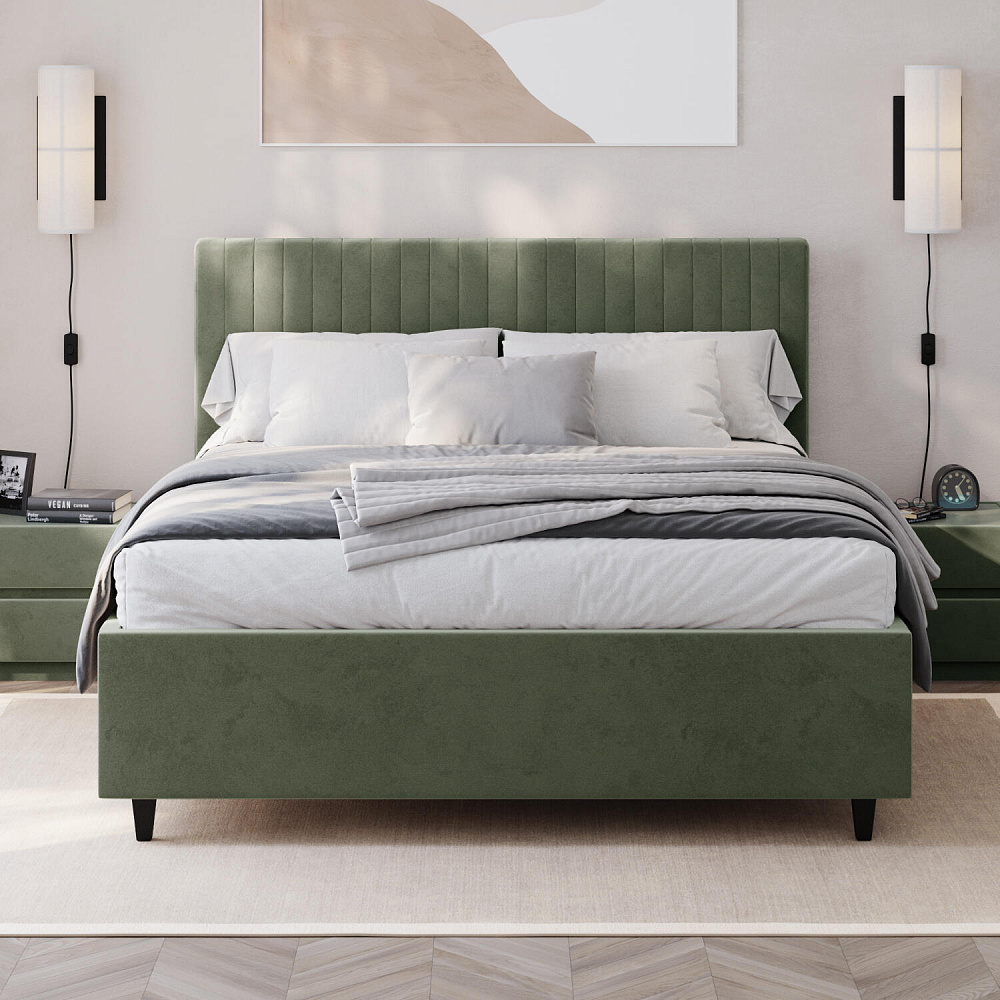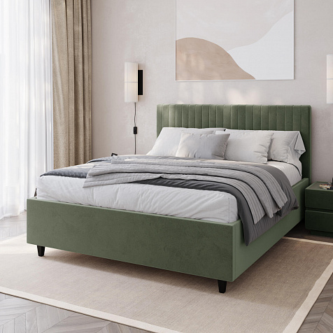 Кровать «Люсия» выполнена в мягкой обивке из практичного и износостойкого велюра. Прямая спинка украшена декоративной стежкой, добавляющей стиля и динамики в интерьер. Модель поможет сэкономить место в комнате благодаря просторному бельевому коробу под решёткой, и станет не только практичным, но и стильным акцентом в спальне.