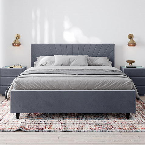 Кровать «Марин» — универсальная модель в минималистическом стиле с геометрической стёжкой. Строгий и изящный дизайн модели станет ярким элементом в интерьере вашей спальни. Возвышение на ножках добавит в интерьер динамики и лёгкости. Кровать также поможет сэкономить пространство квартиры благодаря вместительному бельевому коробу под решёткой.