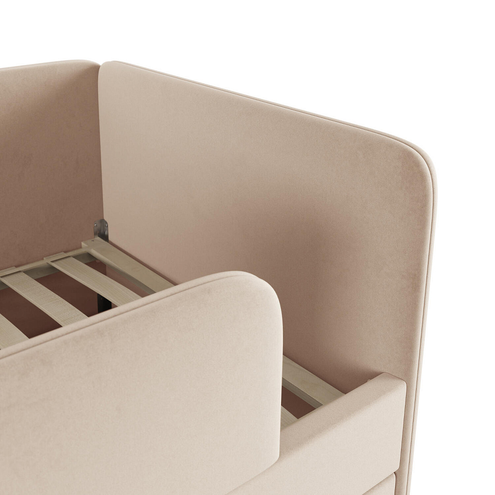 Мягкая кровать «Венди» непременно станет центром детской комнаты. Главная особенность кровати — это выдвижной короб, который можно дополнить матрасом и использовать как второе спальное место. Продуманные размеры спальных мест обеспечат максимально спокойный и полезный отдых ваших детей, а конструкция 2-в-1 сэкономит пространство в комнате.