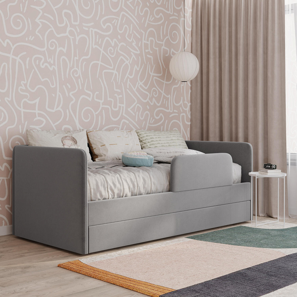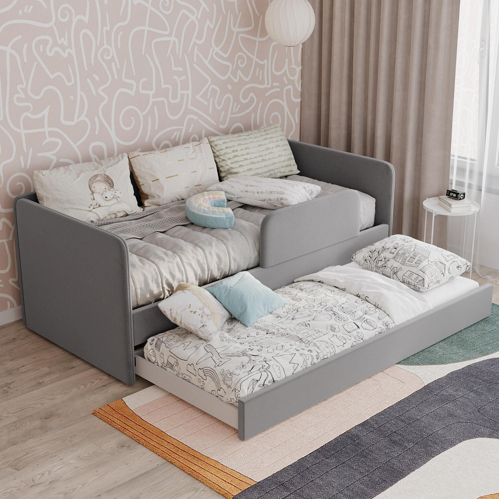 Мягкая кровать «Венди» непременно станет центром детской комнаты. Главная особенность кровати — это выдвижной короб, который можно дополнить матрасом и использовать как второе спальное место. Продуманные размеры спальных мест обеспечат максимально спокойный и полезный отдых ваших детей, а конструкция 2-в-1 сэкономит пространство в комнате.