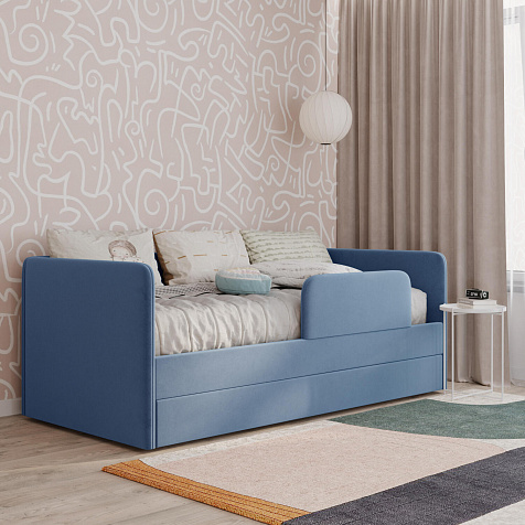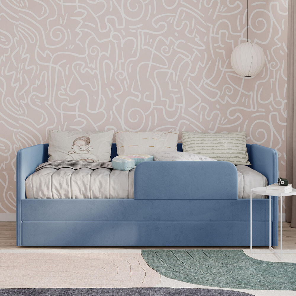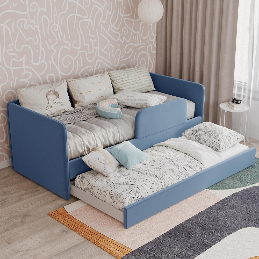 Мягкая кровать «Венди» непременно станет центром детской комнаты. Главная особенность кровати — это выдвижной короб, который можно дополнить матрасом и использовать как второе спальное место. Продуманные размеры спальных мест обеспечат максимально спокойный и полезный отдых ваших детей, а конструкция 2-в-1 сэкономит пространство в комнате.