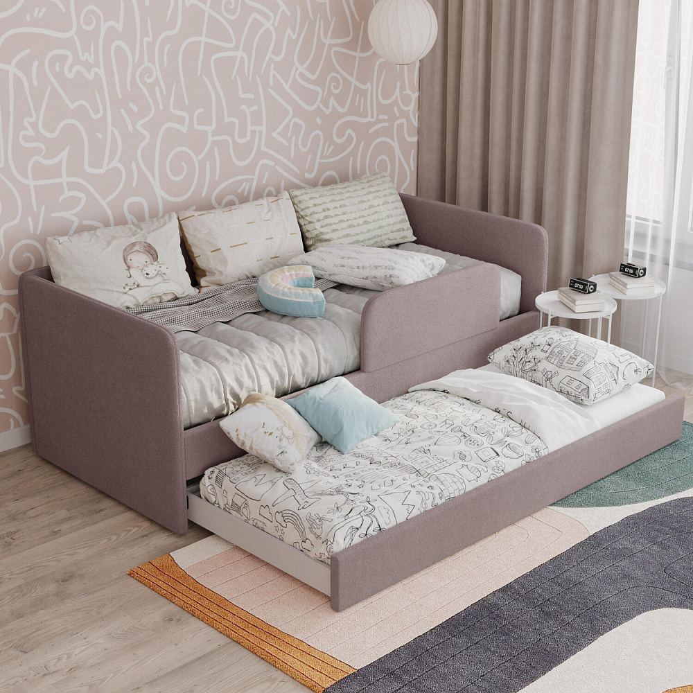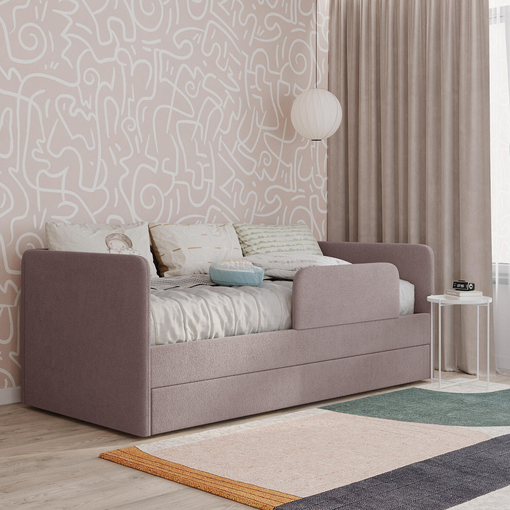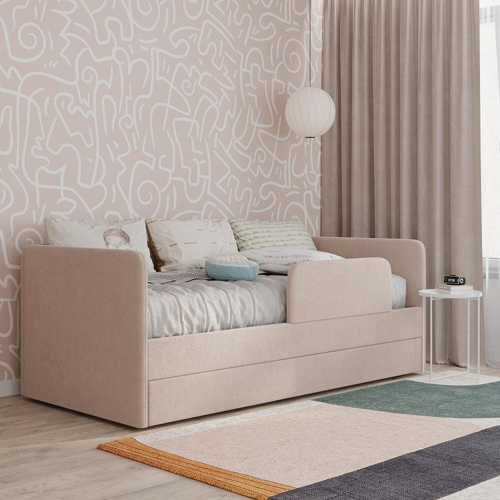 Мягкая кровать «Венди» непременно станет центром детской комнаты. Главная особенность кровати — это выдвижной короб, который можно дополнить матрасом и использовать как второе спальное место. Конструкция 2-в-1 сэкономит пространство в комнате, а удобные размеры спальных мест обеспечат максимально спокойный и полезный отдых ваших детей.