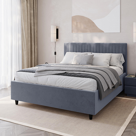 Двухместная кровать «Люсия» с матрасом «Корби» выполнена в обивке из практичного велюра Velutto. Кровать украсит собой любую спальню, станет центром стильного и современного интерьера. Высокое изголовье декорировано вертикальными стёжками, которые придают кровати дополнительный шарм и элегантность. Прочное основание и универсальный матрас средней жёсткости обеспечат впечатляющий уровень функциональности и комфорта.