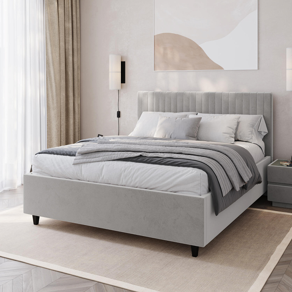 Двухместная кровать «Люсия» с матрасом «Корби» выполнена в обивке из практичного велюра Velutto. Кровать украсит собой любую спальню, станет центром стильного и современного интерьера. Высокое изголовье декорировано вертикальными стёжками, которые придают кровати дополнительный шарм и элегантность. Прочное основание и универсальный матрас средней жёсткости обеспечат впечатляющий уровень функциональности и комфорта.
