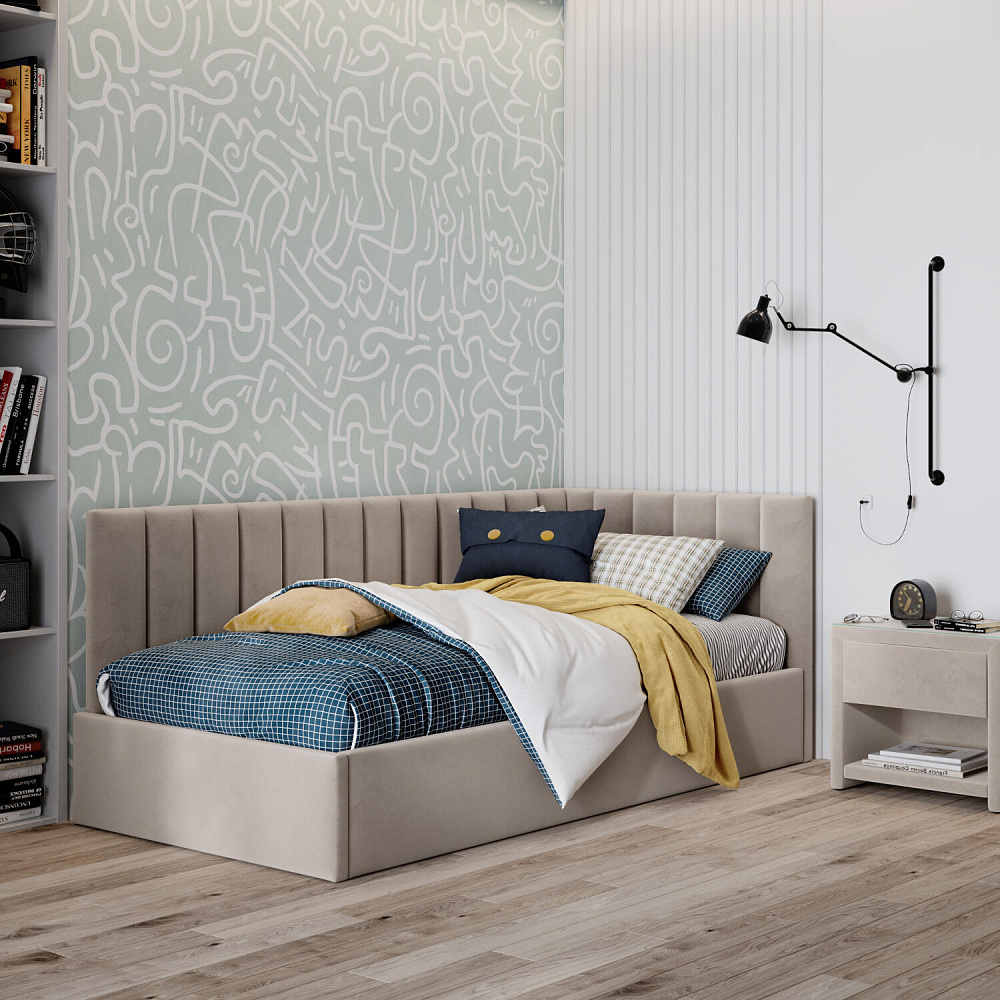 Односпальная кровать «Трино» с матрасом «Тедди» — сочетание стиля и уюта в интерьере современной детской комнаты. Спинка Г-образной формы украшена декоративной вертикальной стежкой, обивка из прочного велюра смягчает царги и углы кровати, делая их более безопасными для ребёнка. Мягкий матрас с пружинным блоком и гипоаллергенным трикотажным чехлом обеспечивает высокий уровень комфорта во время сна.