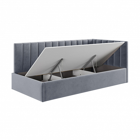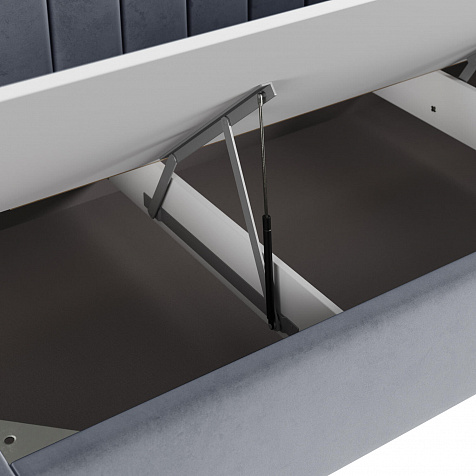 Удобный доступ к коробу. Механизм легко поднимает и опускает основание кровати вместе с матрасом благодаря газлифтам.