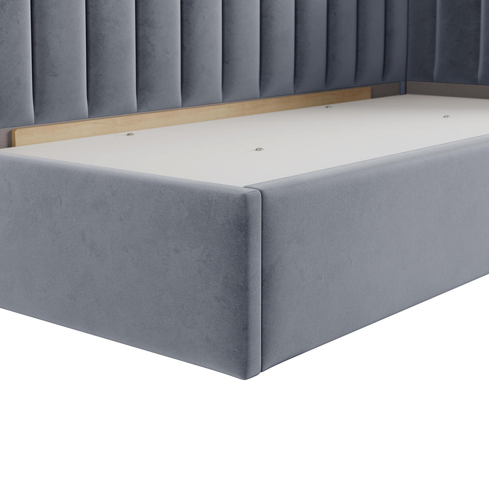 Односпальная кровать «Трино» с матрасом «Тедди» — сочетание стиля и уюта в интерьере современной детской комнаты. Спинка Г-образной формы украшена декоративной вертикальной стежкой, обивка из прочного велюра смягчает царги и углы кровати, делая их более безопасными для ребёнка. Мягкий матрас с пружинным блоком и гипоаллергенным трикотажным чехлом обеспечивает высокий уровень комфорта во время сна.