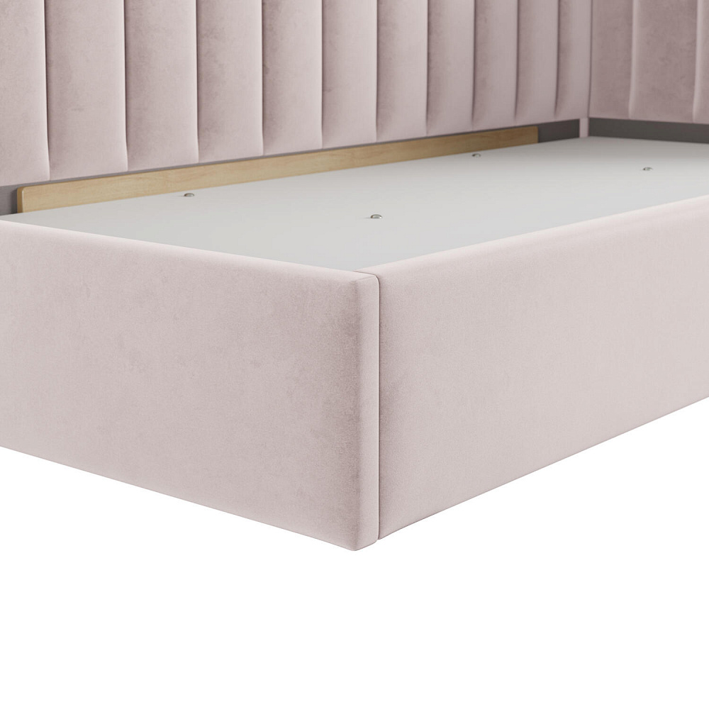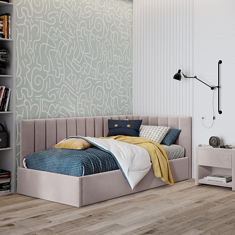 Односпальная кровать «Трино» с матрасом «Тедди» — сочетание стиля и уюта в интерьере современной детской комнаты. Спинка Г-образной формы украшена декоративной вертикальной стежкой, обивка из прочного велюра смягчает царги и углы кровати, делая их более безопасными для ребёнка. Мягкий матрас с пружинным блоком и гипоаллергенным трикотажным чехлом обеспечивает высокий уровень комфорта во время сна.