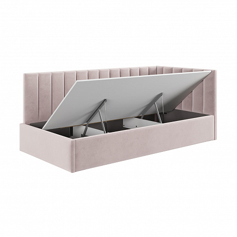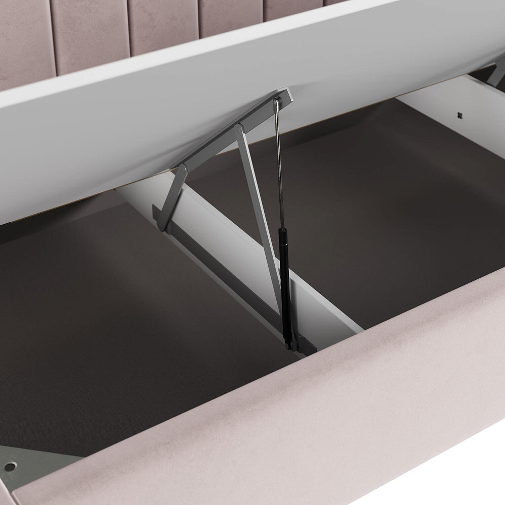 Удобный доступ к коробу. Механизм легко поднимает и опускает основание кровати вместе с матрасом благодаря газлифтам.