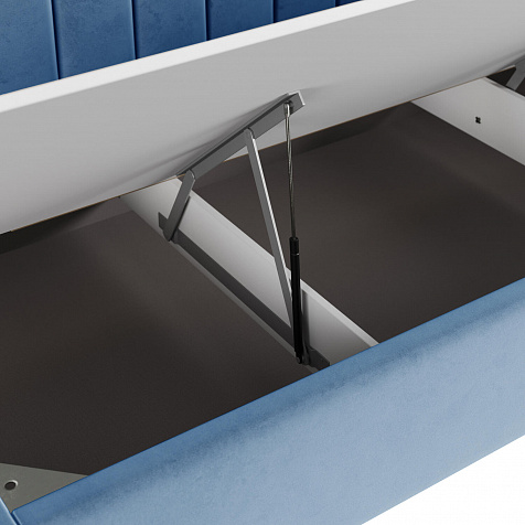 Удобный доступ к коробу. Механизм легко поднимает и опускает основание кровати вместе с матрасом благодаря газлифтам.