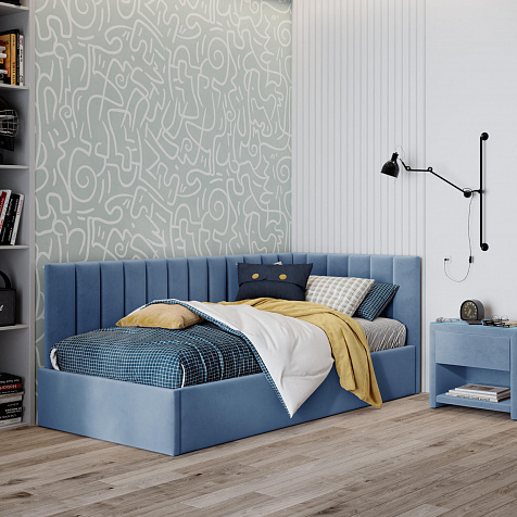 Односпальная кровать «Трино» с матрасом «Тедди» — сочетание стиля и уюта в интерьере современной детской комнаты. Спинка Г-образной формы украшена декоративной вертикальной стежкой, обивка из прочного велюра смягчает царги и углы кровати, делая их более безопасными для ребёнка. Мягкий матрас с пружинным блоком и гипоаллергенным трикотажным чехлом обеспечивает высокий уровень комфорта во время сна.