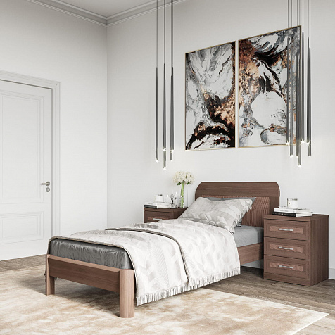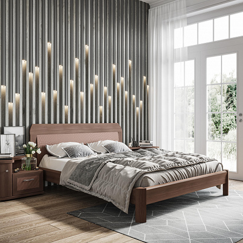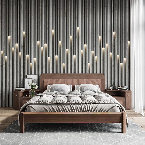 Кровать «Магна» выделяется оригинально оформленным изголовьем со вставкой из панели с натуральным бамбуком. Интересный декор в цвете корпуса расставит лёгкие акценты в интерьере. Такая кровать будет гармонично смотреться в спальне в классическом стиле, в лофт оформлении, и в скандинавском минимализме.