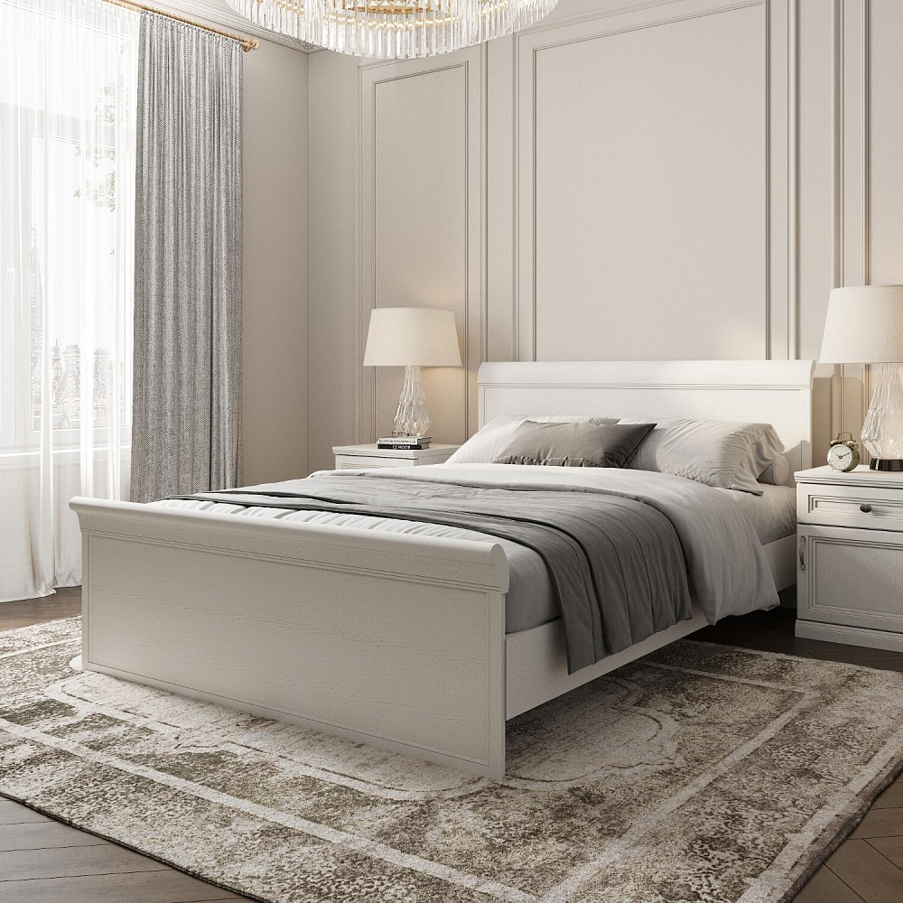Двуспальная кровать «Белладжио» с высокими изголовьем и изножьем создана в лаконичном дизайне. В ее оформлении нет ничего лишнего, только элегантные линии, которые делают эту кровать идеальным решением для неоклассического или прованского интерьера квартиры или загородного дома.
