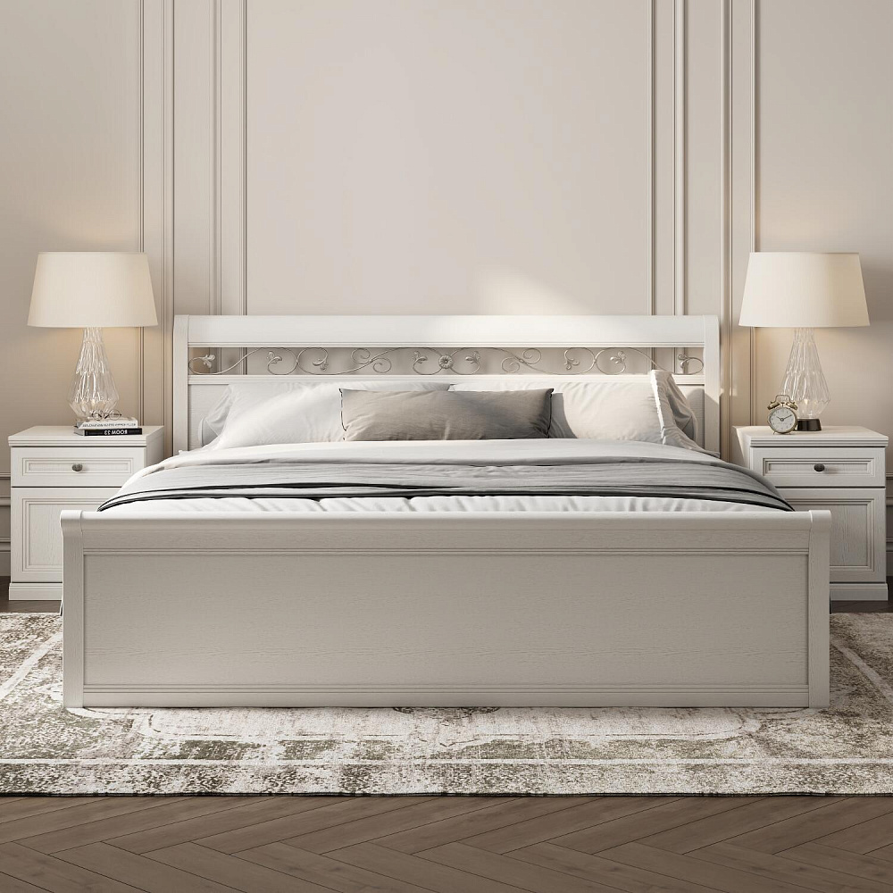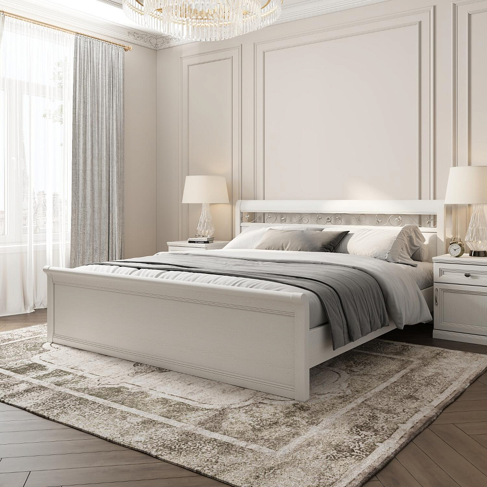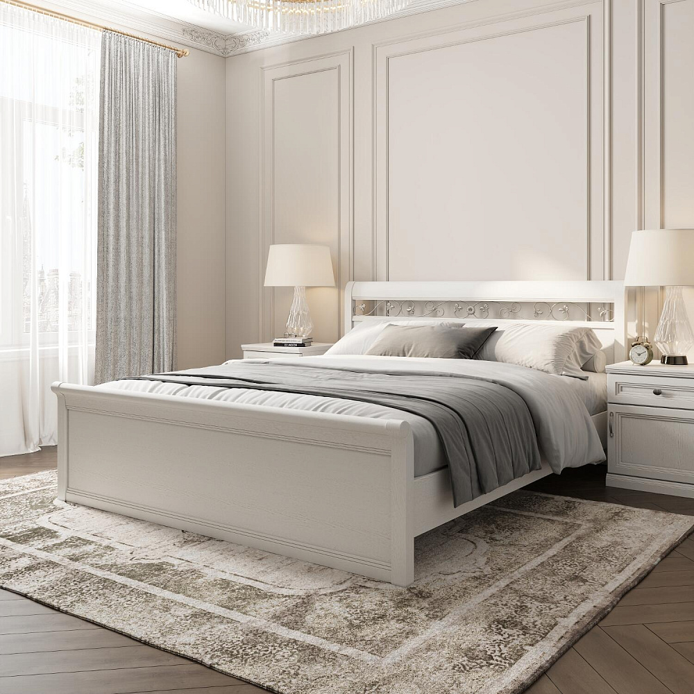 Двуспальная кровать «Белладжио» с очаровательным кованым орнаментом в изголовье идеально дополнит интерьер в стиле прованс или неоклассика. Высокие спинка и изножье делают кровать уютным островком для крепкого сна и спокойного приятного отдыха.