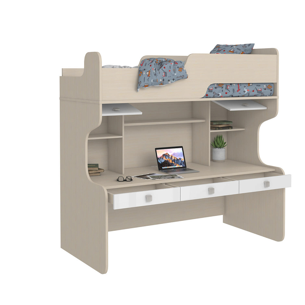 Кровать-чердак «Тиана» с рабочим столом и удобной системой хранения учебных принадлежностей понравится как детям, так и их родителям. Функциональный модуль значительно освободит место в комнате для игр и активных занятий.
