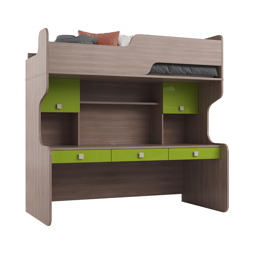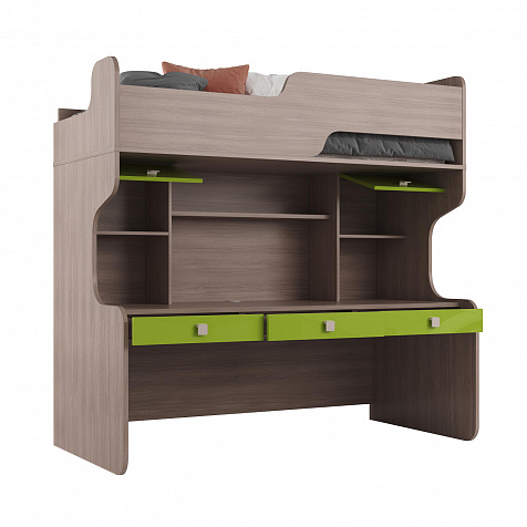 Кровать-чердак «Тиана» с рабочим столом и удобной системой хранения учебных принадлежностей понравится как детям, так и их родителям. Функциональный модуль значительно освободит место в комнате для игр и активных занятий.