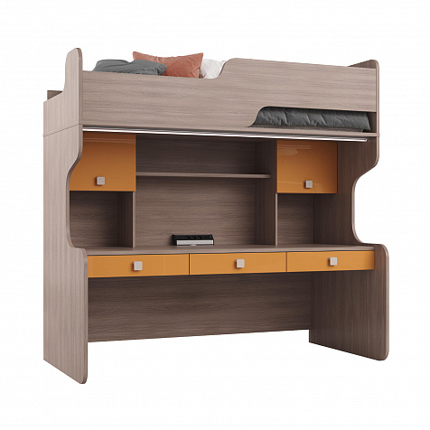 Кровать-чердак «Тиана» — продуманная модель с рабочим столом, удобной системой хранения, диодным светильником и блоком розеток в комплекте. Функциональная кровать понравится как детям, так и их родителям — она значительно экономит место в комнате для игр и активных занятий.