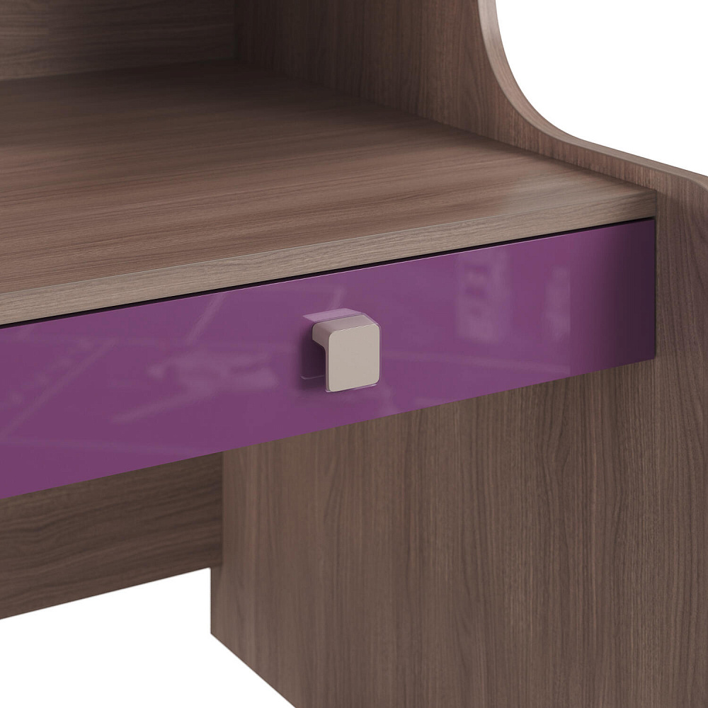 Продуманная двухместная рабочая зона с системой хранения. Под кроватью есть просторная столешница с отверстием для проводов, три выдвижных ящика, два шкафа и открытые полки. Рабочее место будет удобно как для одного, так и для двоих детей, места хватит всем учебным материалам и канцелярии.