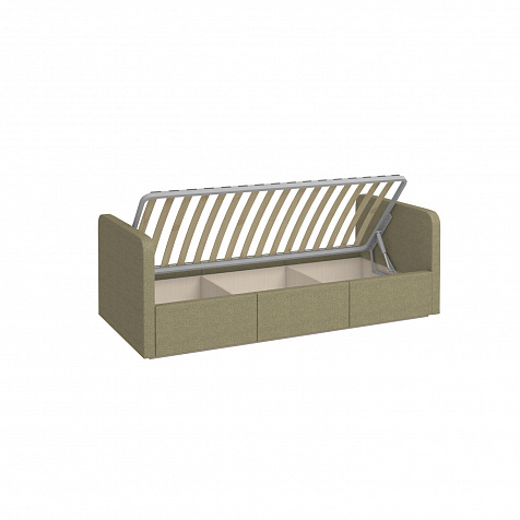 - Отделение для хранения. Под ортопедическим основанием есть разделенная на три части вместительная ниша для постельных принадлежностей, пледов или игрушек.