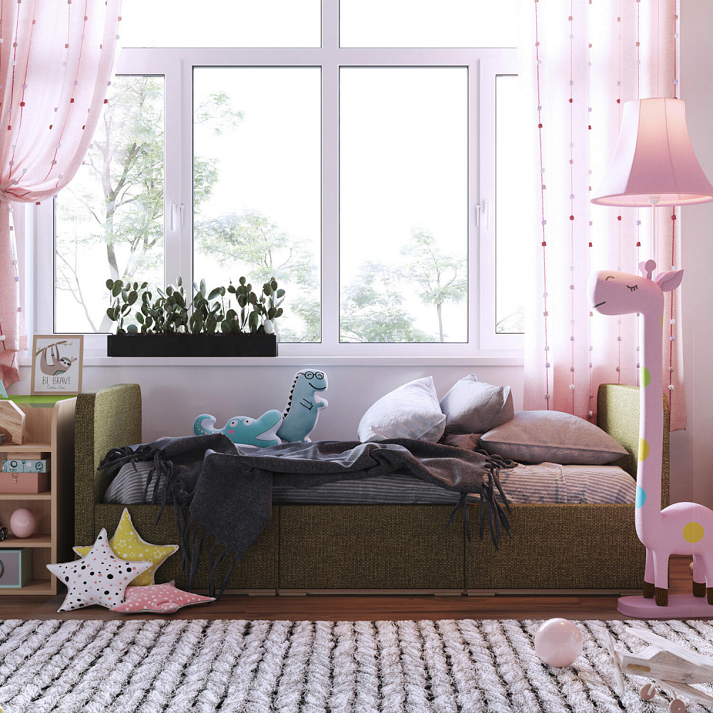 - Размер спального места — 900 х 2000 мм. Идеальный размер с учетом постоянного изменения роста ребёнка.