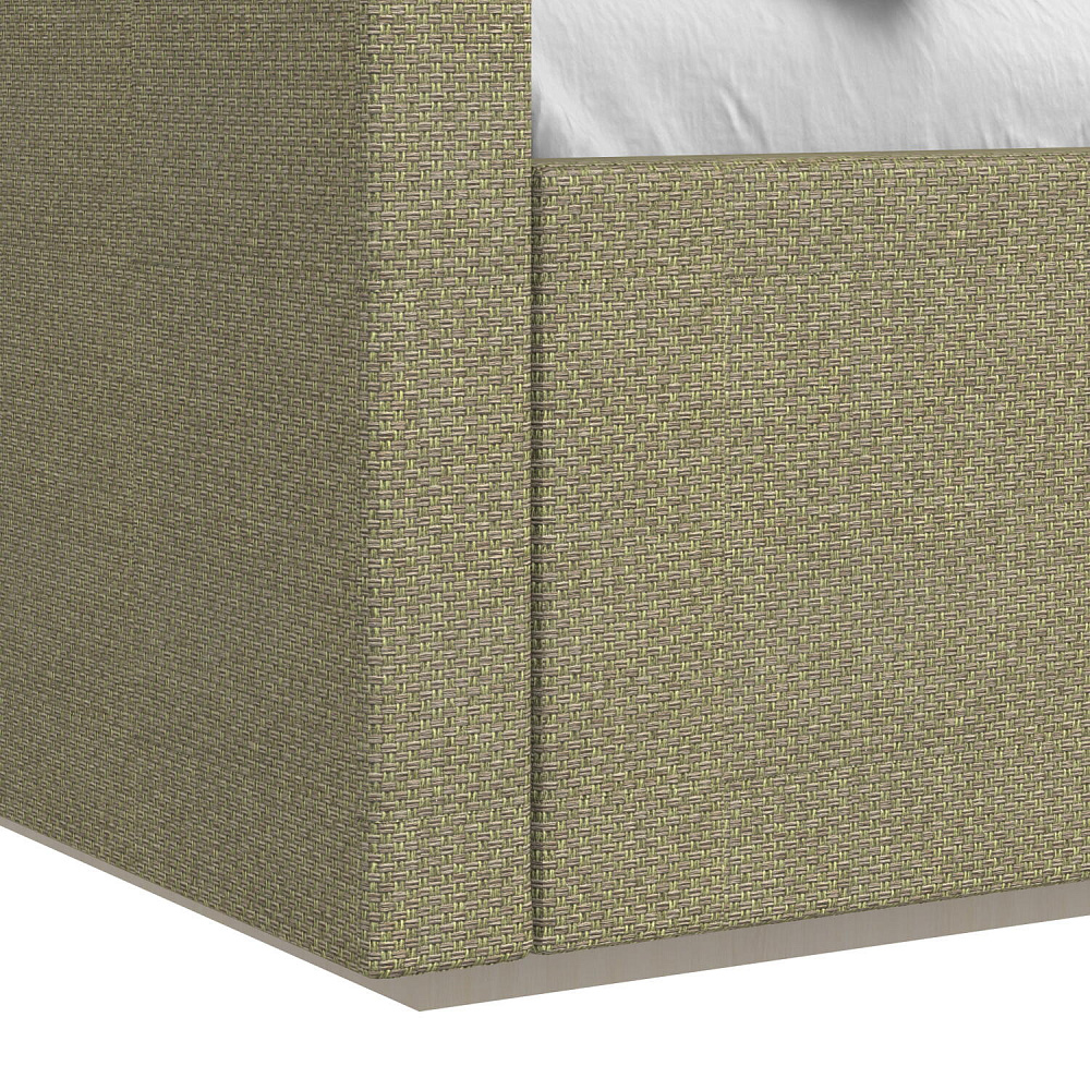 - Обивка из ткани. Высокая закругленная спинка, боковины и царга кровати обиты практичным материалом, позволяя оформить уютное спальное место.
